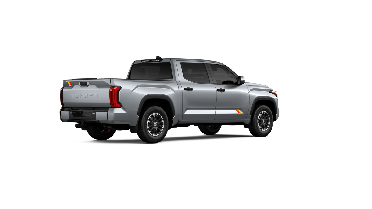- Chrome "TUNDRA" and "SR5" door badges; black door handles, window molding, mirror caps, tailgate spoiler and overfenders