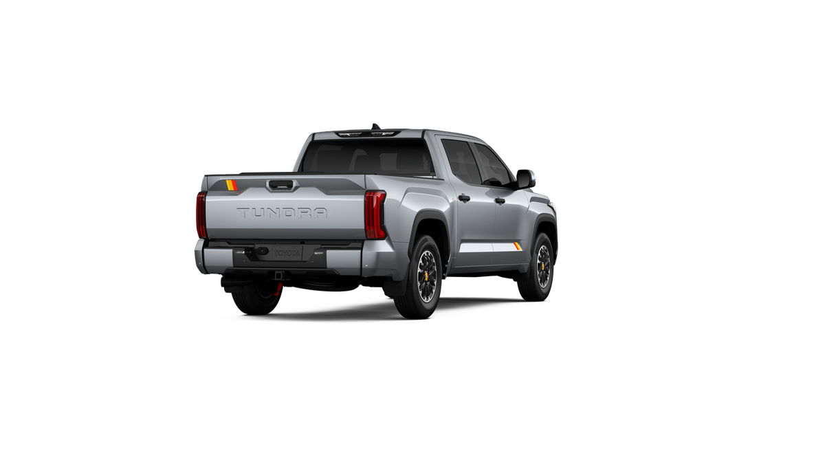 - Chrome "TUNDRA" and "SR5" door badges; black door handles, window molding, mirror caps, tailgate spoiler and overfenders