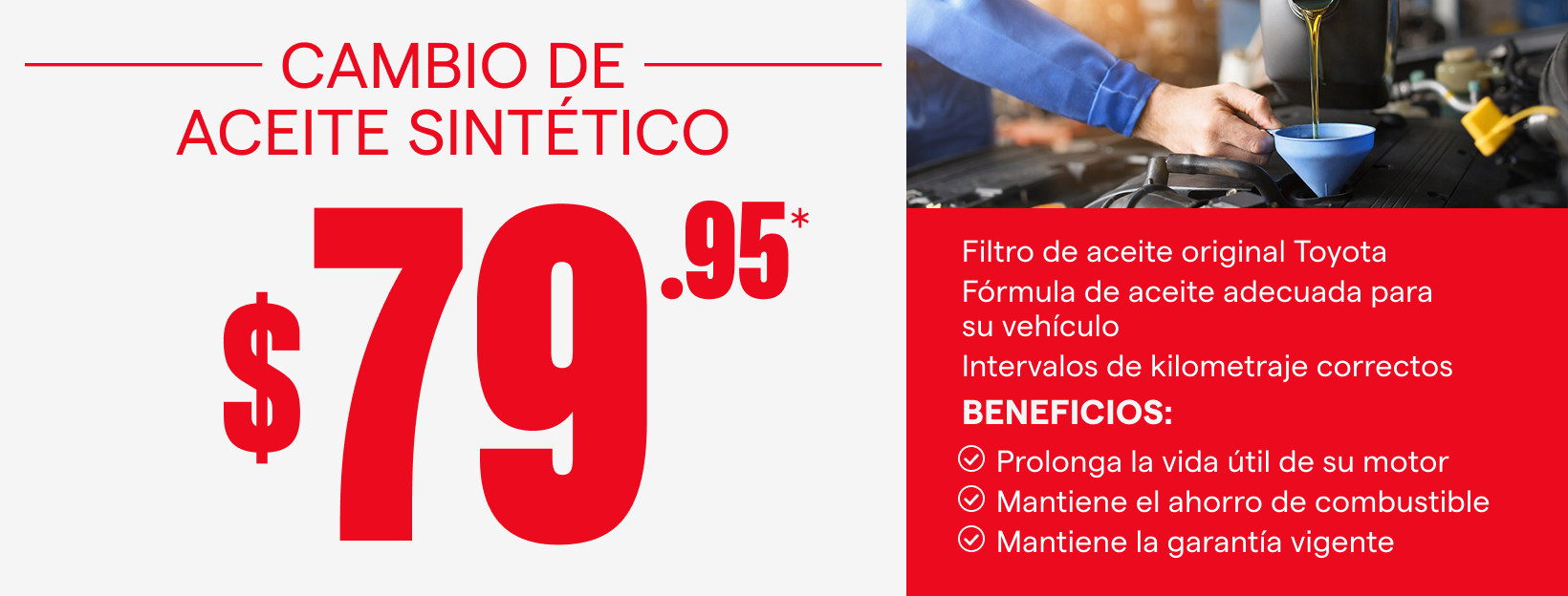 *Vehículos de 4 cilindros. Oferta válida solo en Headquarter Toyota. Incluye impuestos y suministros de taller; cargo adicional por eliminación de residuos peligrosos. Debe presentar el cupón al momento del servicio. No válido con otras ofertas, descuentos ni promociones especiales. No aplicable a compras anteriores. Sujeto a disponibilidad. Consulte en Headquarter Toyota para obtener más información. Los cupones son válidos solo de lunes a viernes. Vence el 3/1/26.